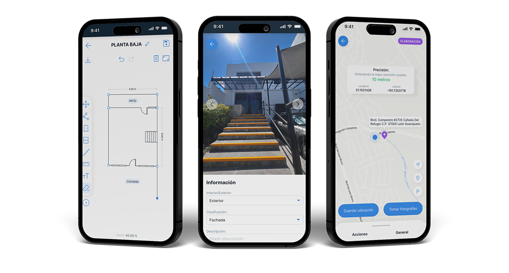 Permite generar evidencias de comparables durante las visitas, adjuntar fotos, clasificar inmuebles y sincronizar con la plataforma Sax.